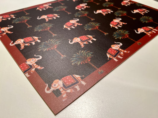 Elefanti & Palme Allover Black, set di 4 tovagliette in vinile